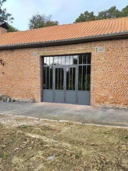Réalisation par MENUISAL avec la série Reynaers CD68 d'une double porte à ouverture extérieure dans le style atelier à Locquignol.