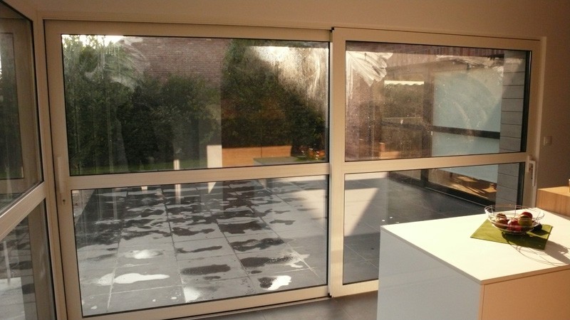 Projet réalisé par Menuisal à Chereng prés de Lille comprenant un agrandissement dans la maçonnerie existante et une extension en ossature, pour l'installation de baies coulissantes à levage en aluminium bi-color offrant de meilleurs performances thermique et excellente étanchéité à l'eau et à l'air et un système performant de retardement à l'effraction.
